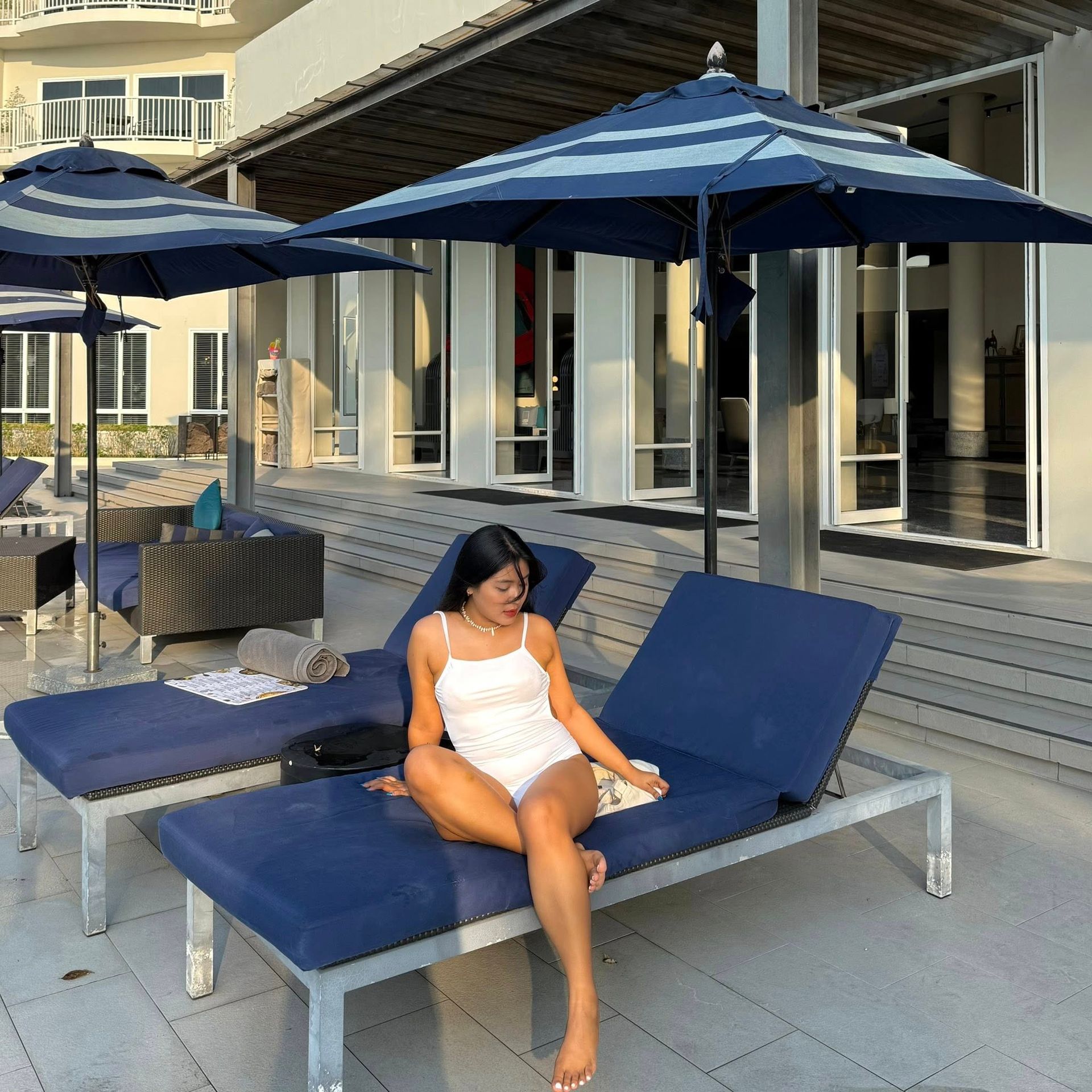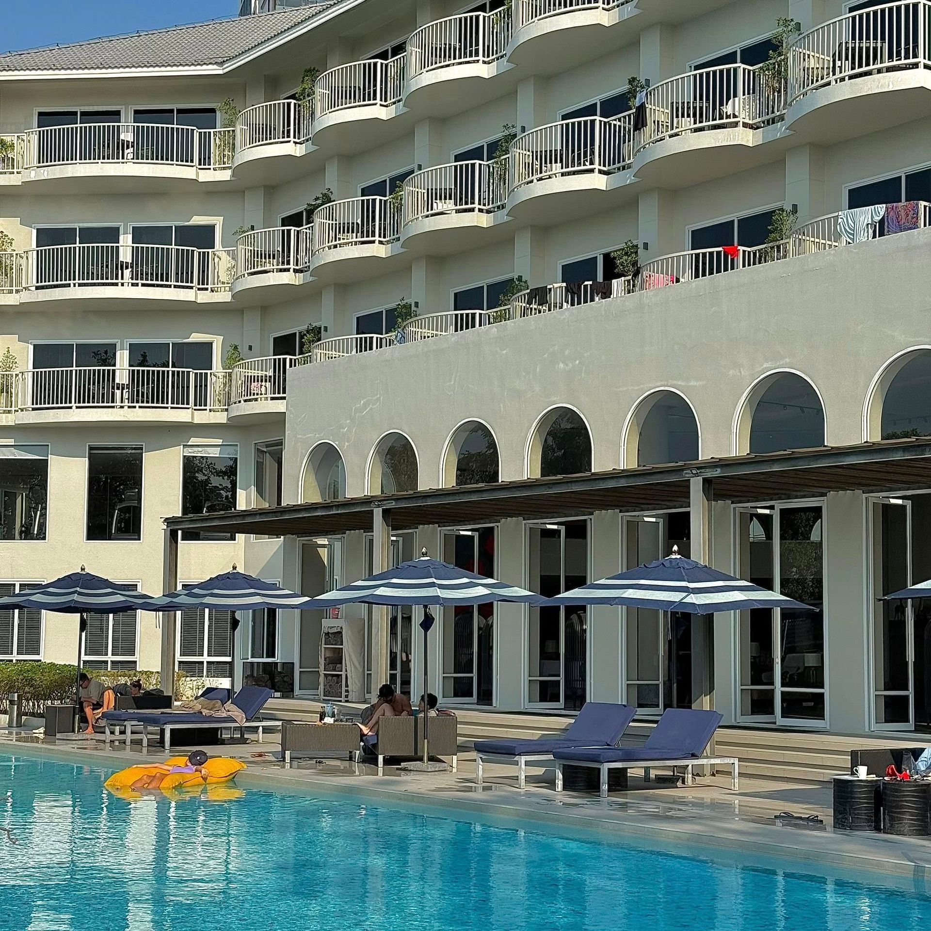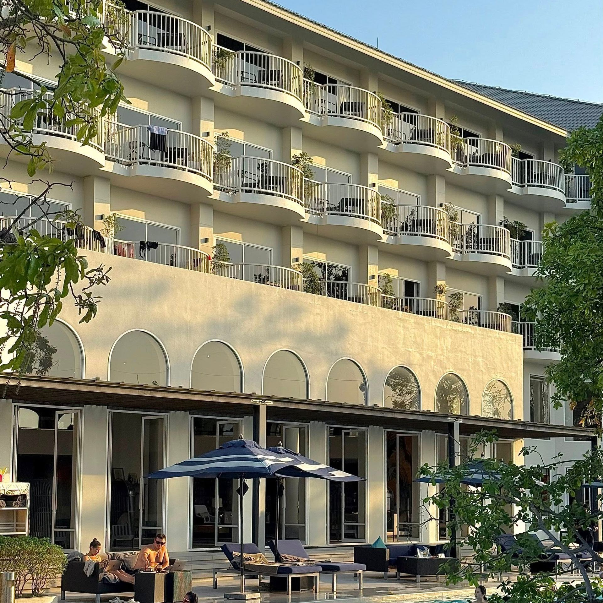 ที่พักสไตล์โคโลเนียล โทนขาว น้ำเงิน ทำเลดี มีสระว่ายน้ำ มีจุดให้เดินไปชมพระอาทิตย์ตก ที่สำคัญถ่ายรูปสวยมากๆ เราไปพักมา 1 คืน ที่พักดี เตียงนุ่ม มองเห็นวิวทะเลจากในห้องพัก ที่สำคัญมีร้านอาหาร คาเฟ่อยู่ด้านหน้าด้วยนะ ไว้ไปพักผ่อนกัน : )